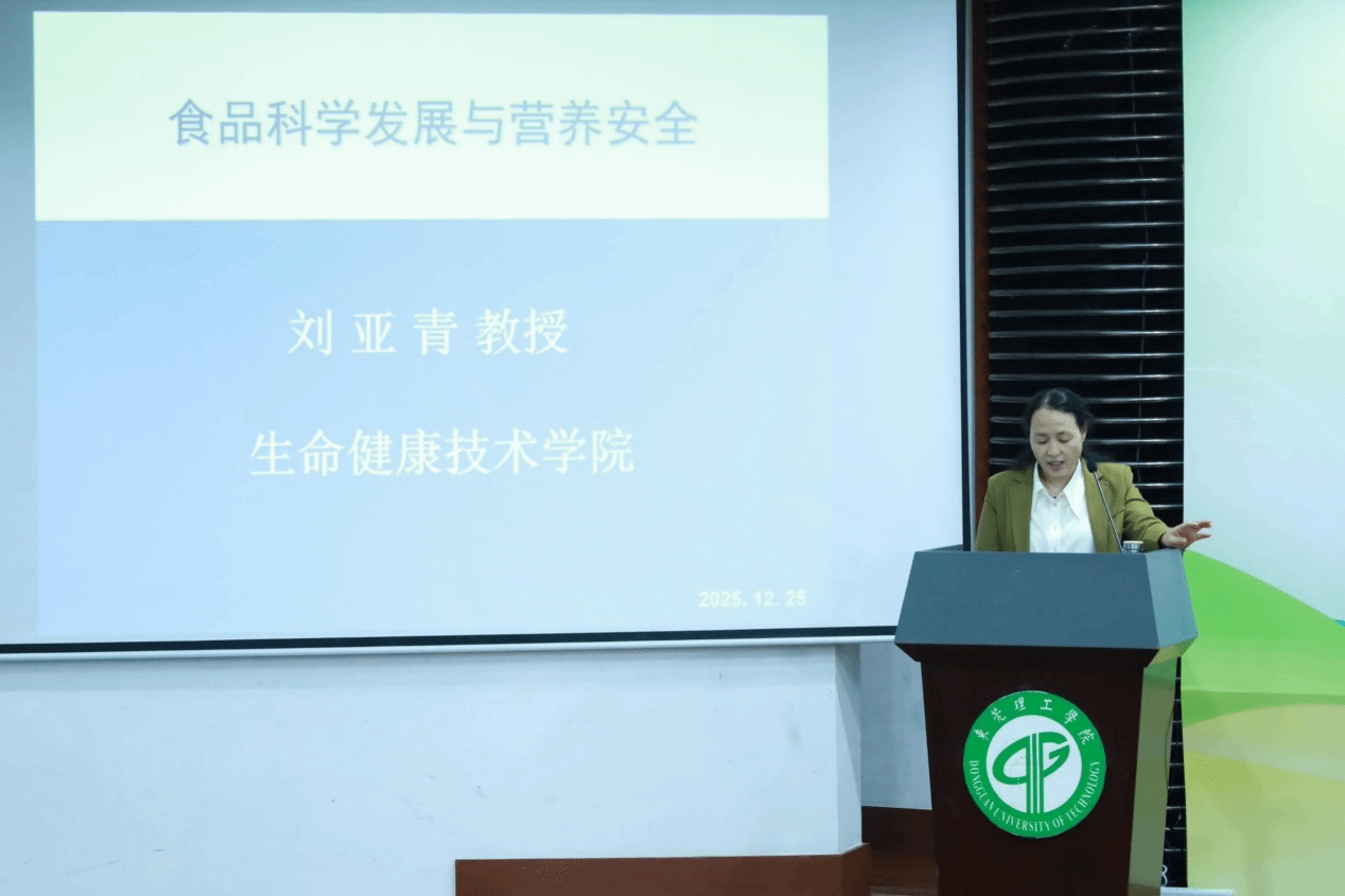 在学术报告环节,刘亚青教授以《食品科学发展与营养安全》为题作专题讲座,围绕“食品科学发展史中的四个里程碑”“药食同源与大健康”“精准营养与大健康”及“食品安全监管与检测”四个板块,系统阐述了食品科学的发展历程、食品安全监管检测的关键作用以及相关领域国内外研究动态。同时,刘教授结合具体实例,勉励青年学子在学习生活中养成善于发现问题并解决问题的习惯,持续提升自身综合素养,并深刻阐释了树立正确人生观、价值观的重要意义,激励大家勇担重任,积极投身强国建设、民族复兴伟大事业。