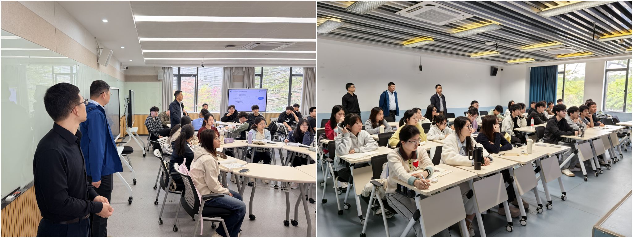 院长王际辉、党委书记谢炯标、党委副书记葛金虎带领辅导员、教务员深入各班级课堂,开展新学期首次巡课工作。检查组全面督查教学运行情况,重点关注教师到岗、学生出勤、课堂秩序及教学互动氛围,对教师授课准备、教学设施运行等环节进行细致评估,确保课堂教学平稳有序。
