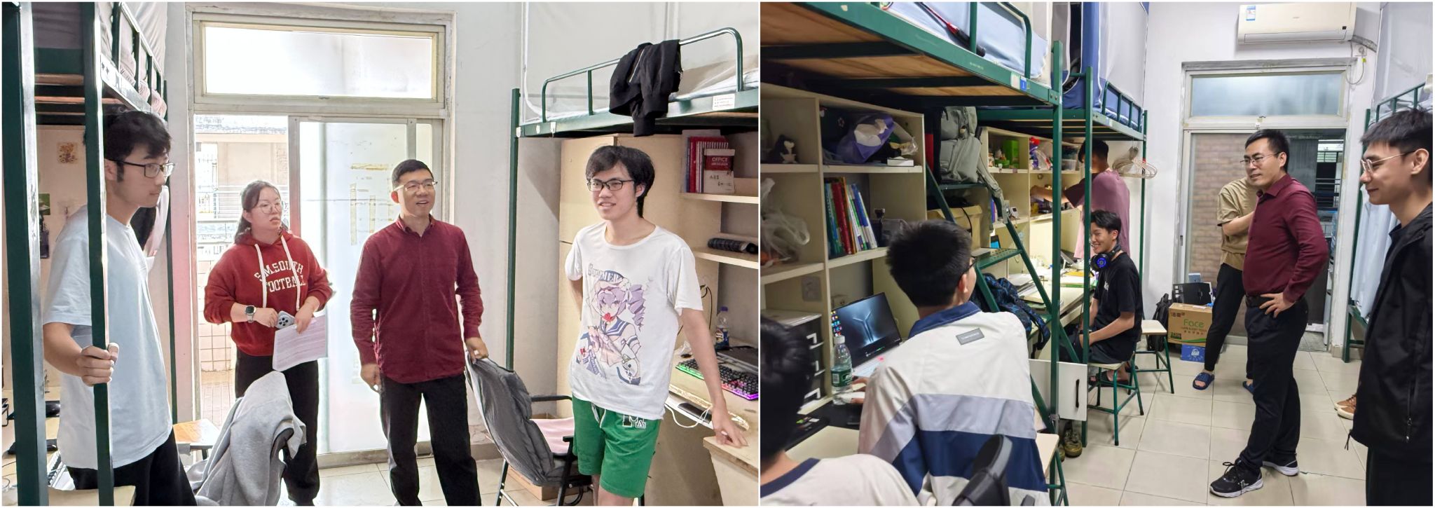 党委副书记葛金虎带队,与全体辅导员、班主任及社区社工共同深入学生宿舍,实地走访了解学生返校情况,耐心倾听同学们的新学期规划与实际需求,重点检查宿舍设施安全和生活服务保障情况,并叮嘱同学们及时调整状态,以积极饱满的精神面貌迎接新学期。