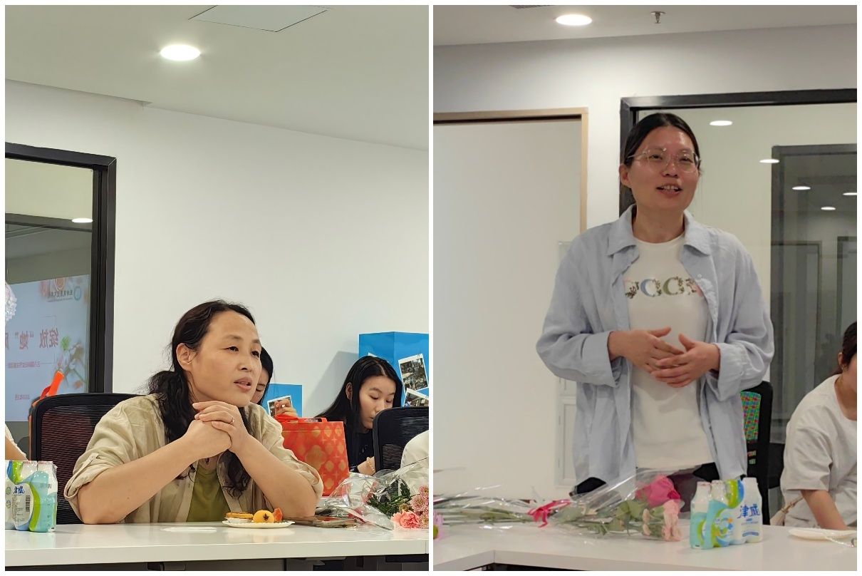 贴心地准备了精致茶歇,当一支支象征美好祝福的鲜花送到大家手中时,惊喜与感动的笑容绽放在每位女教职工脸上,会议室里回荡着欢声笑语。在轻松愉悦的氛围中,大家品甜点,话家常,畅谈工作生活点滴,分享节日喜悦,彼此距离在交流中悄然拉近。两位“三八红旗手”——刘亚青教授与贺丽生教授深情分享了平衡工作、科研与家庭的心得,她们展现的坚韧与智慧赢得全场由衷敬佩,掌声此起彼伏。